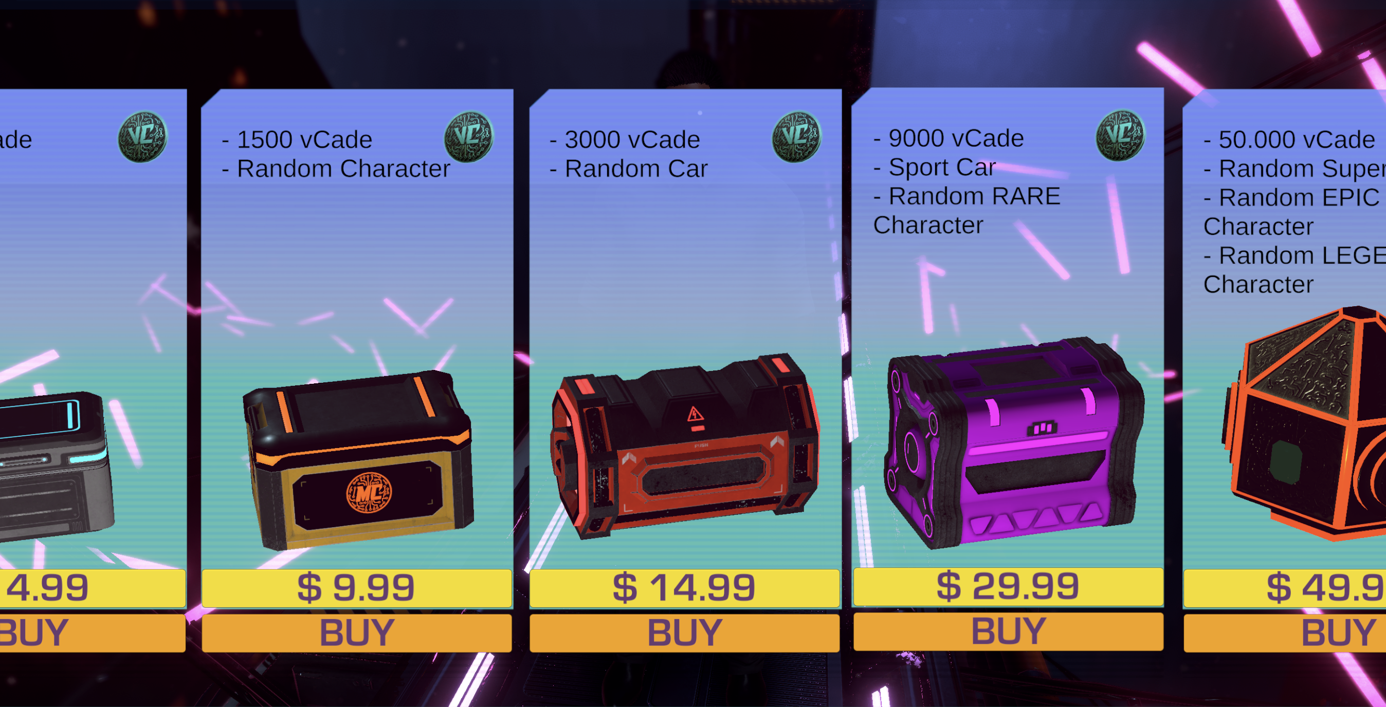 2. Medium vCade box - $9.99: Suitable for users who want to acquire mid-tier assets like advanced vehicles or unique avatars with special abilities.